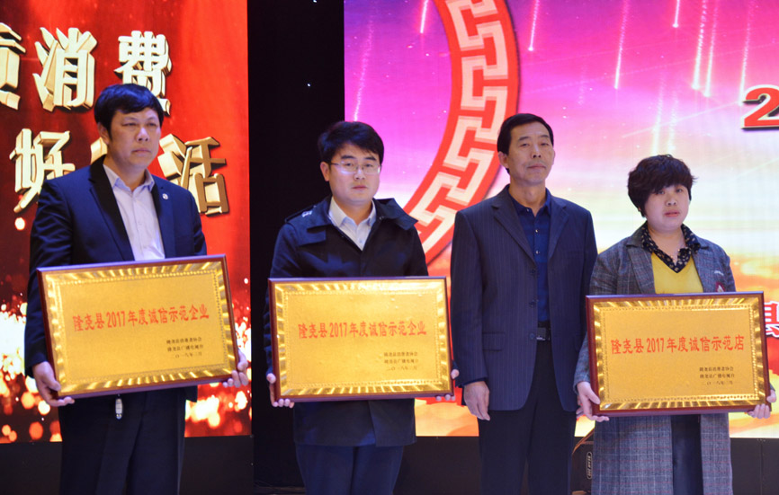 會上,發(fā)布了消費警示,質(zhì)量抽檢通報,并對群眾投訴名單進行了曝光。隨后對誠信經(jīng)營企業(yè)做出表彰。期間播放了青龍劍釘業(yè)宣傳片,并為企業(yè)頒發(fā)了“隆堯縣2017年度誠信示范企業(yè)”獎牌。
